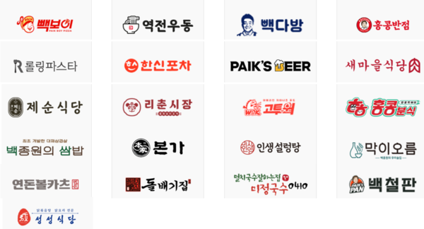 2주차(6월 30일~7월 6일): 빽다방, 빽보이피자, 한신포차, 롤링파스타, 미정국수, 리춘시장, 본가, 돌배기집, 원조쌈밥집, 백스비어, 홍콩분식 등 11개 브랜드.