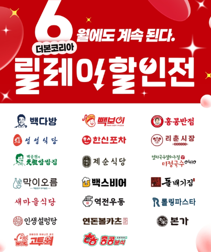 6월 한 달간 전국 어디서나 더본코리아 할인전을 알뜰하게 즐기고, 가맹점주와 소비자 모두가 상생하는 혜택을 누려보세요!