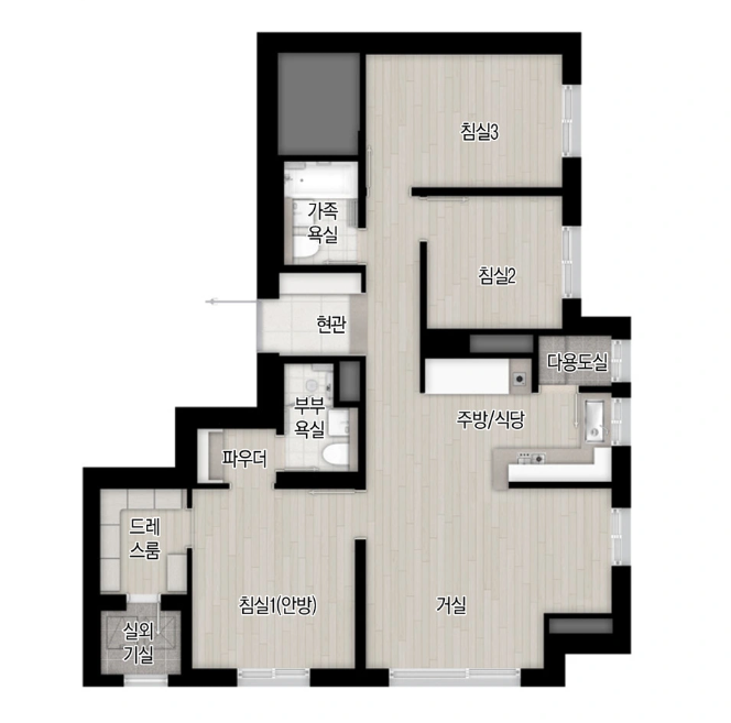- 커뮤니티센터 공간을 키우기 위해 1층이 높아져, 해당 동 입주민은 지하 1층을 통해서만 출입