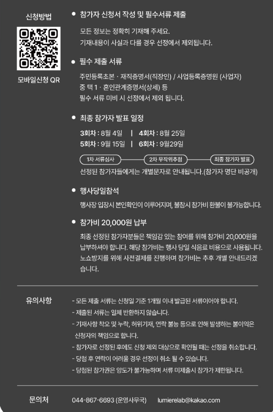 참가자는 무작위 추첨으로 선정되므로, 신청 후 결과를 꼭 확인하세요.