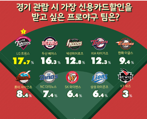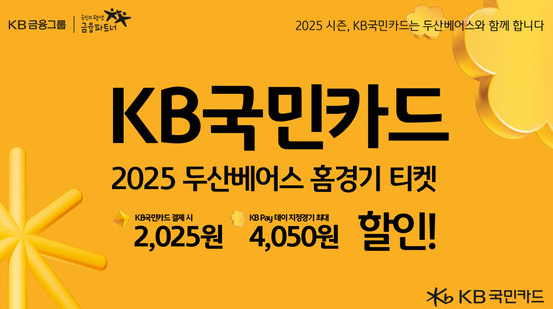 KB국민카드는 두산베어스 홈경기 입장권을 할인해줍니다.