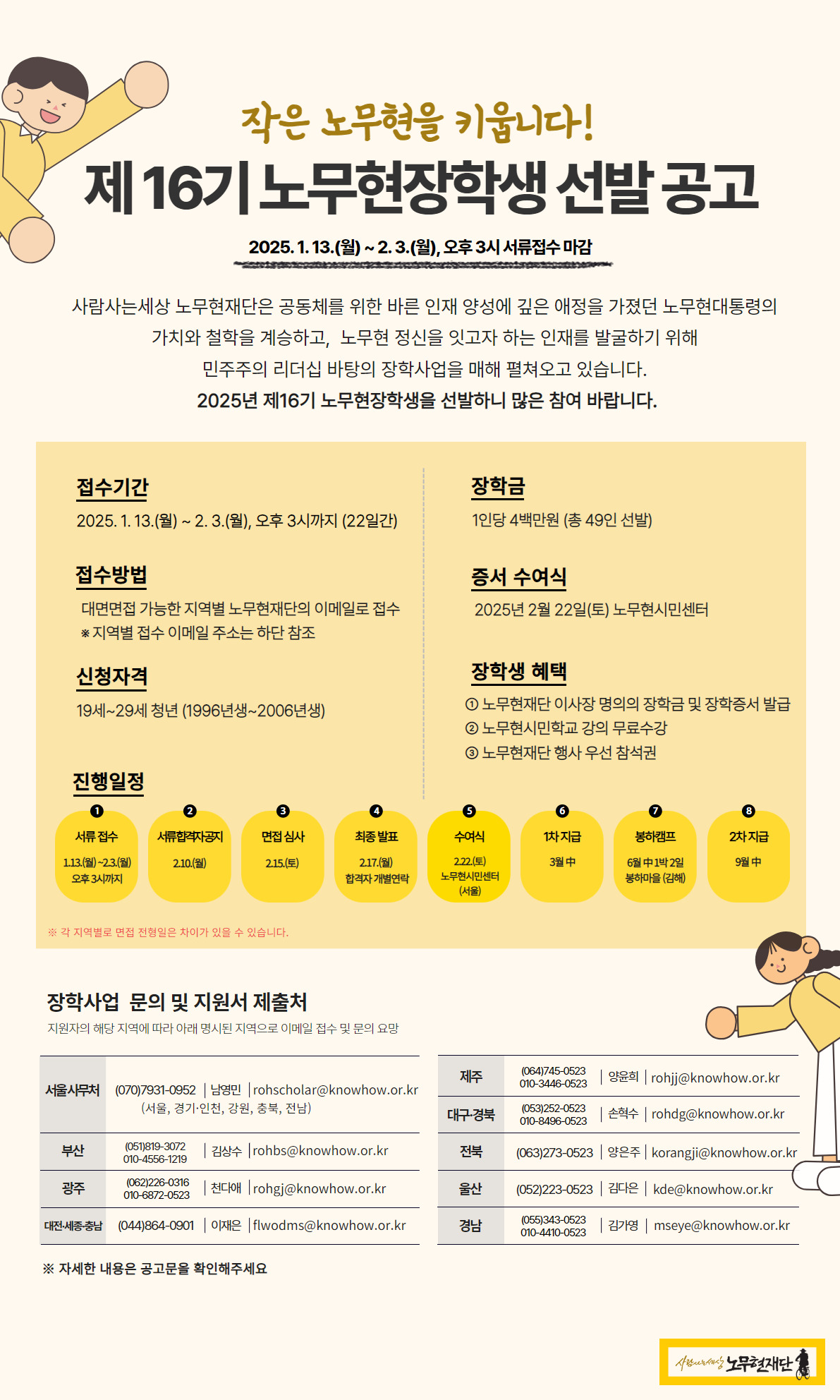 - 장학증서 수여식: 2025년 2월 22일(토), 서울 노무현시민센터