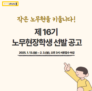 - 사업명: 2025년 제16기 노무현장학생 선발