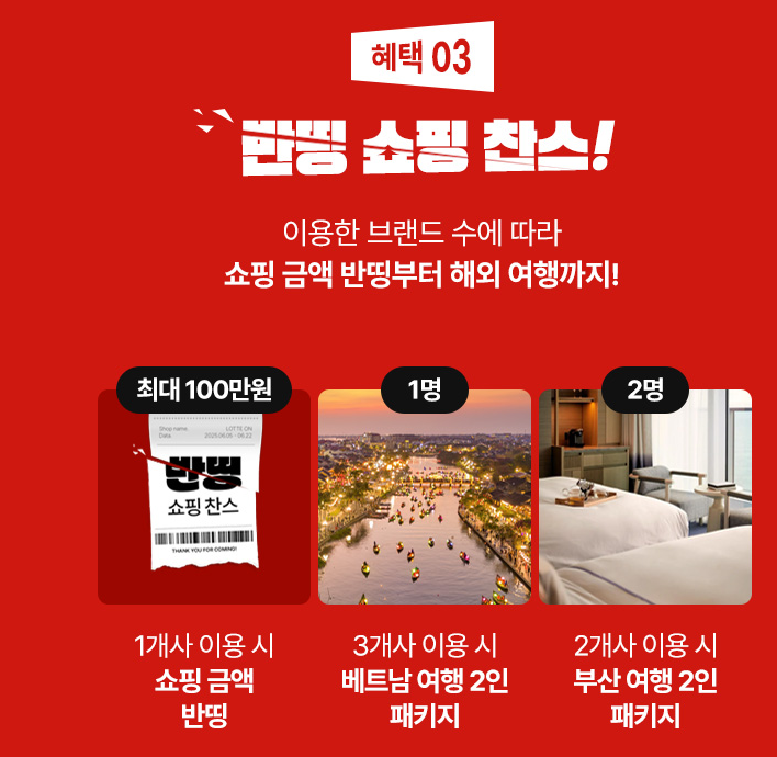 - 문화·여행·레저 혜택: 롯데월드, 아쿠아리움, 서울스카이 등 테마파크 입장권 반값, 시네마·전시 티켓, 제주 숙박 할인 등
