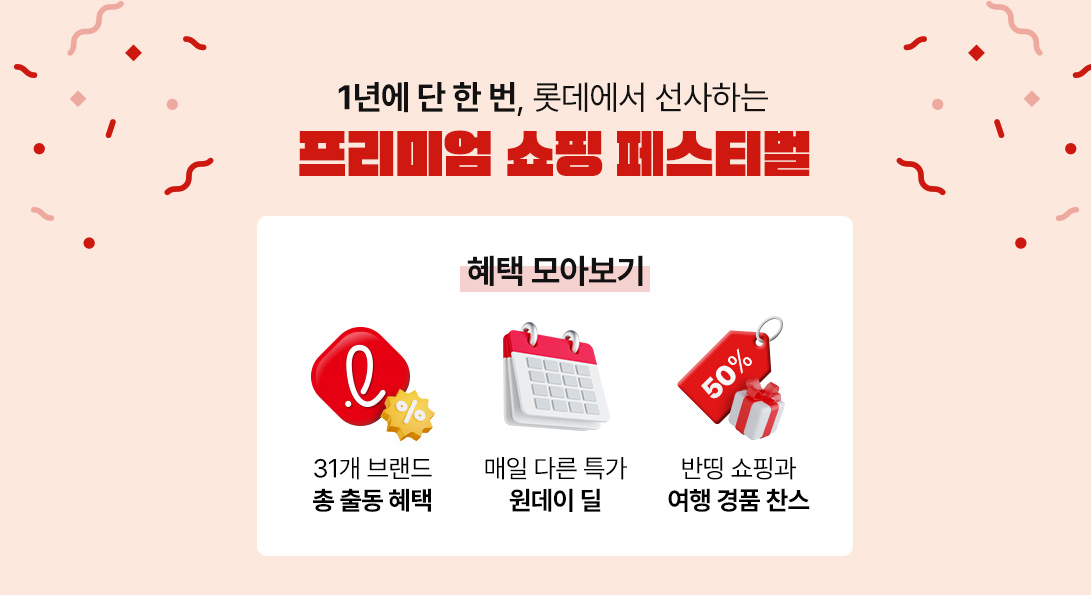 롯데레드페스티벌은 2023년 첫 선을 보인 이후 올해로 3회째, 행사 기간은 11일에서 18일로 연장됐고, 참여 계열사도 16곳에서 20곳으로 확대됐습니다. 롯데백화점, 롯데마트, 롯데온, 롯데슈퍼, 롯데홈쇼핑, 롯데하이마트 등 유통 계열사는 물론, 호텔롯데, 롯데면세점, 롯데월드, 롯데카드, 롯데칠성음료 등 비유통 계열사까지 참여합니다. 패션, 식품, 가전, 레저, 여행, 문화 등 라이프스타일 전 영역에서 통합 할인과 경품 이벤트가 펼쳐집니다.
