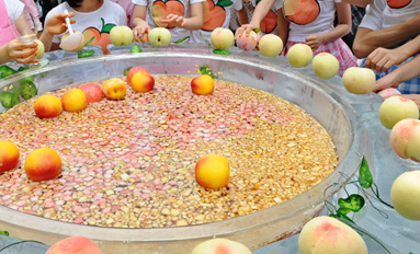 올해 축제는 복숭아 판촉전, 먹거리, 즐길 거리, 볼거리, 연계행사 등 5개 테마로 구성됩니다.